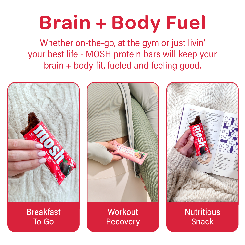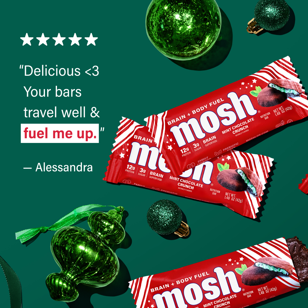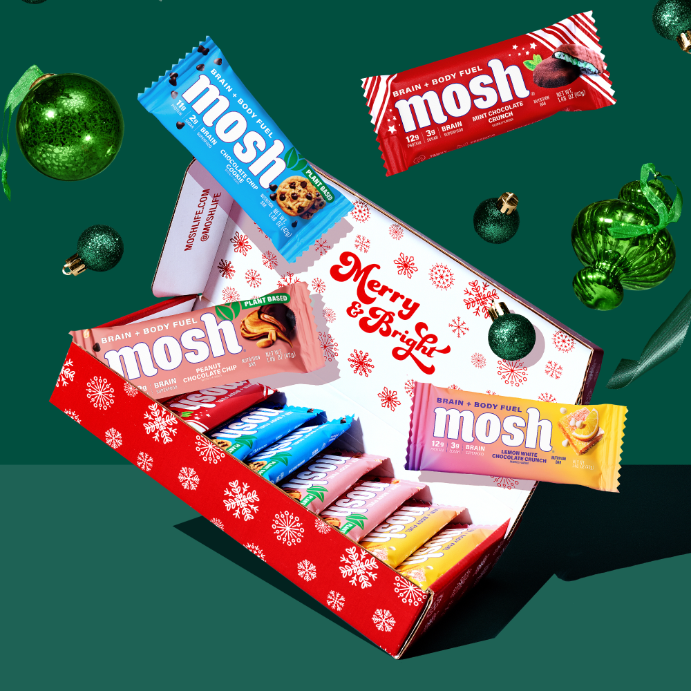 Storage: Store MOSH bars in a cool, dry place (60–75°F), away from heat and humidity, and keep packaging sealed to maintain freshness.
